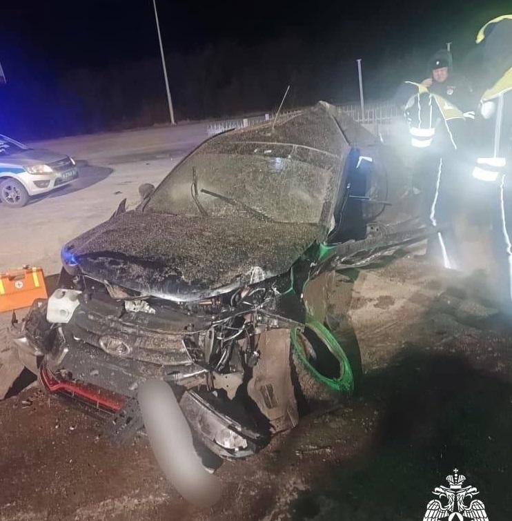 По предварительной информации водитель автомобиля «Lada Granta» не справился с управлением и врезался в бетонное ограждение.