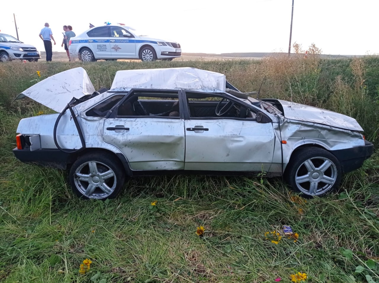 22-летний водитель, управляя автомобилем «ВАЗ-21099», не справился с управлением. Машина слетела в кювет и опрокинулась.