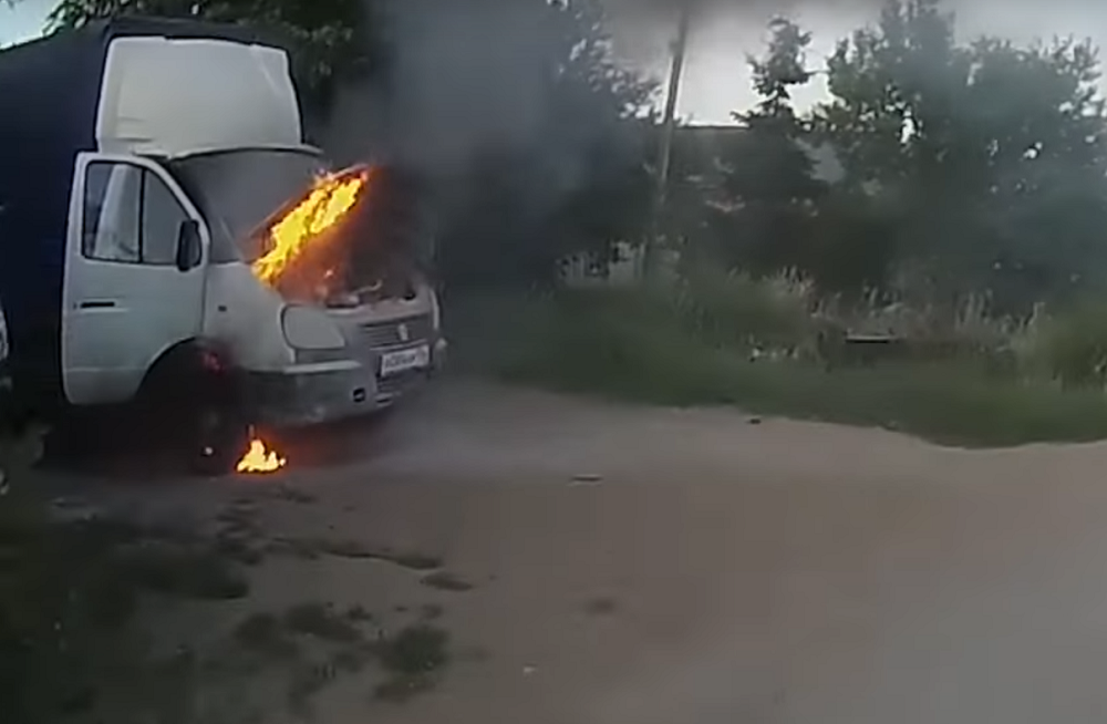 В Бузулуке загорелся автомобиль «Газель», припаркованный возле одного из частных домов. Вырывающиеся из-под капота языки пламени заметили сотрудники патрульно-постовой службы полиции.