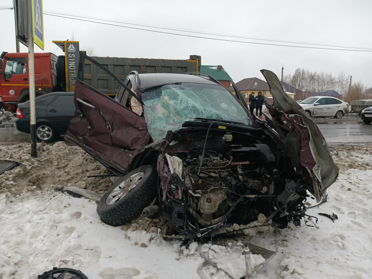 41-летний водитель автомобиля Nissan Murano двигался по улице Объездной, не справился с управлением и выехал на встречку, где допустил столкновение с грузовиком HOWO под управлением 42-летнего водителя.