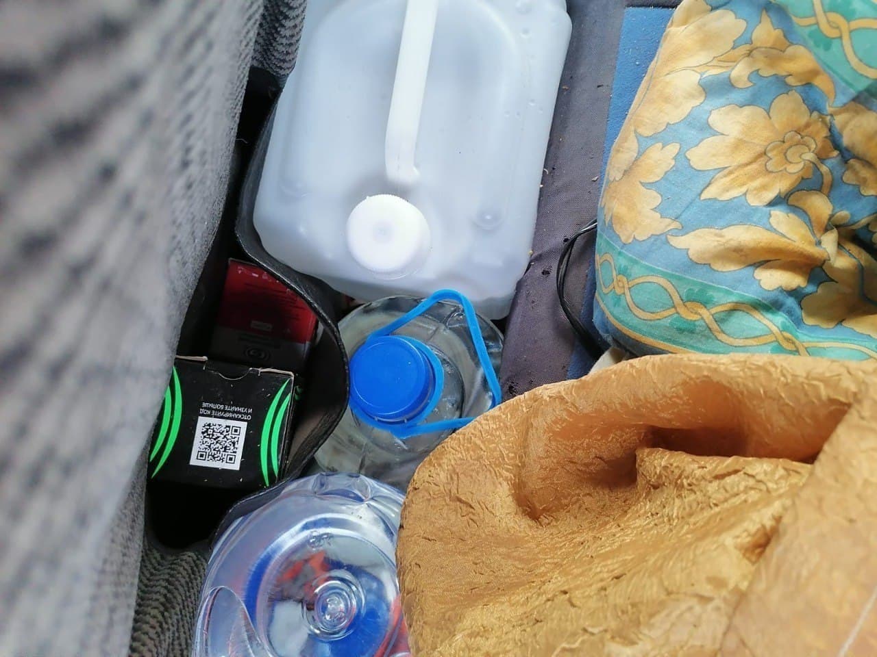 На полу между передним и задним сиденьями были обнаружены 4 пластиковые канистры объемом по 10 литров каждая, а также 2 пластиковые бутылки объемом по 5 литров с прозрачной жидкостью с характерным запахом спирта.