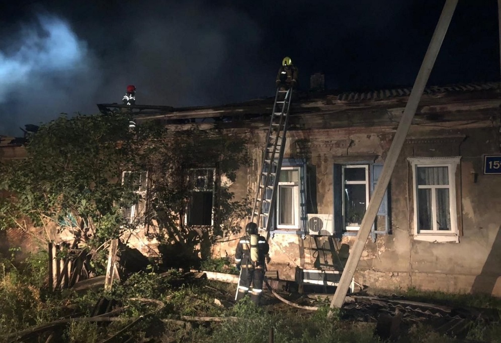 Около полуночи в центре Оренбурга на пересечении улиц Правды и Коваленко загорелся одноэтажный двухквартирный дом. По словам очевидцев у дома обрушилась крыша.