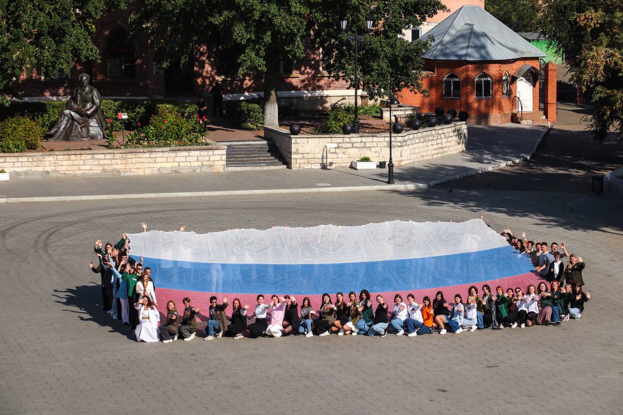 Чтобы показать гостеприимство оренбургского края, активисты российских студенческих отрядов и студенты Оренбургского государственного аграрного университета на площади перед музеем истории Оренбурга развернули рекордсмен среди оренбургских пуховых платков – триколор площадью 68,4 кв. м. Рекорд был зафиксирован в Книге рекордов России в Москве на выставке «Россия».