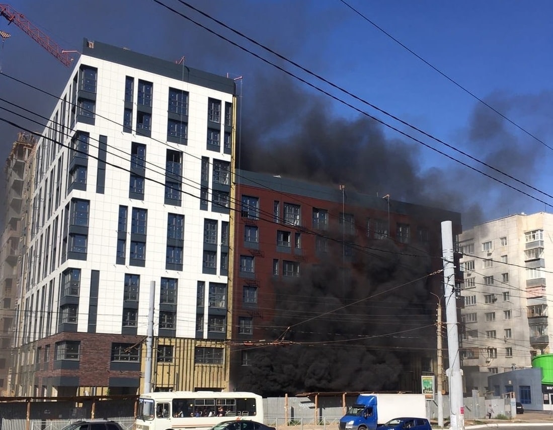 Сегодня в Оренбурге в строящемся на улице Терешковой новом жилом комплексе «Трилогия» произошёл пожар.