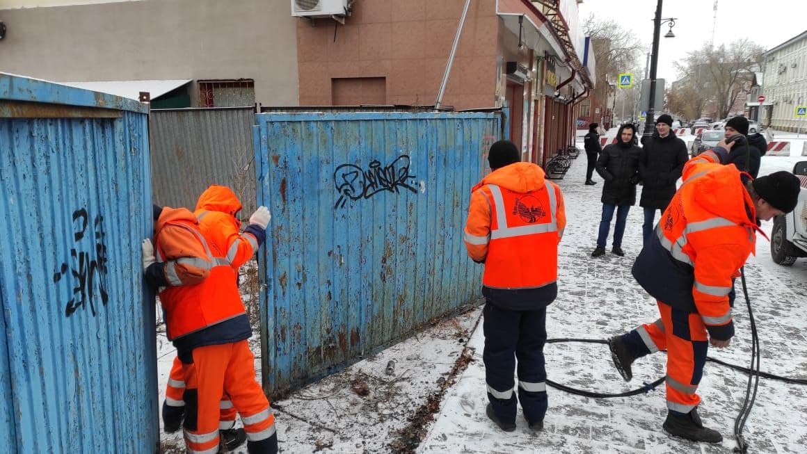 Сегодня подрядчик начал засыпать котлован, расположенный у здания Дома офицеров. В настоящее время на месте находятся представители городского комитета по управлению имуществом, службы судебных приставов, полиции и подрядчика. Идёт демонтаж ворот, возведённых вокруг котлована, чтобы строительная техника могла начать его засыпку.