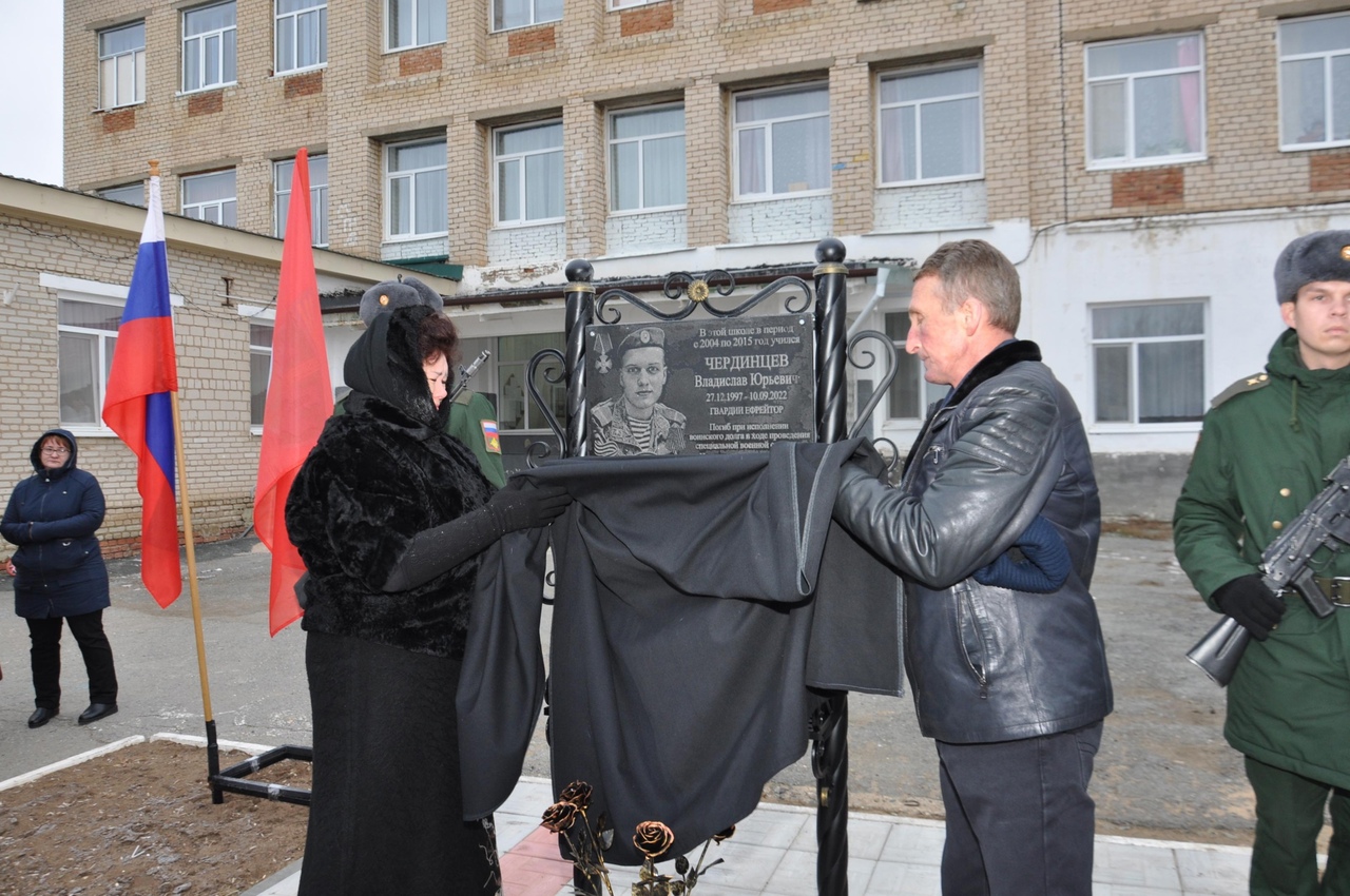 1 декабря в Домбаровской школе №1 торжественно открыли мемориальную доску выпускнику, гвардии ефрейтору воздушно-десантных войск Владиславу Чердинцеву.