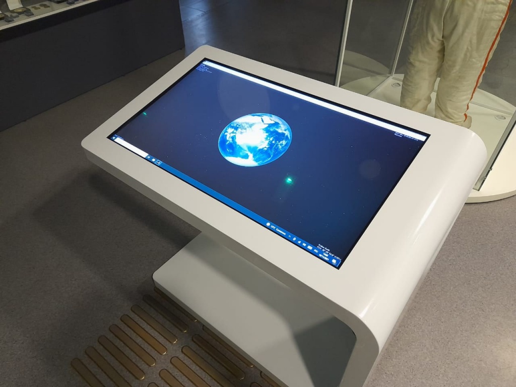 Информационный киоск содержит в себе уникальные документальные видеоматериалы о полетах на МКС космонавта Алексея Овчинина, крупные планы ракеты до старта, внутреннее оснащение МКС, а также фото Земли с орбиты планеты, выполненные самим космонавтом. Кроме того, киоск оснащен бесплатным 3D-симулятором Солнечной системы и выходом в Интернет.