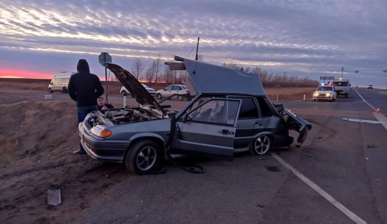 На трассе «Оренбург – Самара» в районе поворота на Сорочинск столкнулись «ВАЗ-2115» и КАМАЗ.