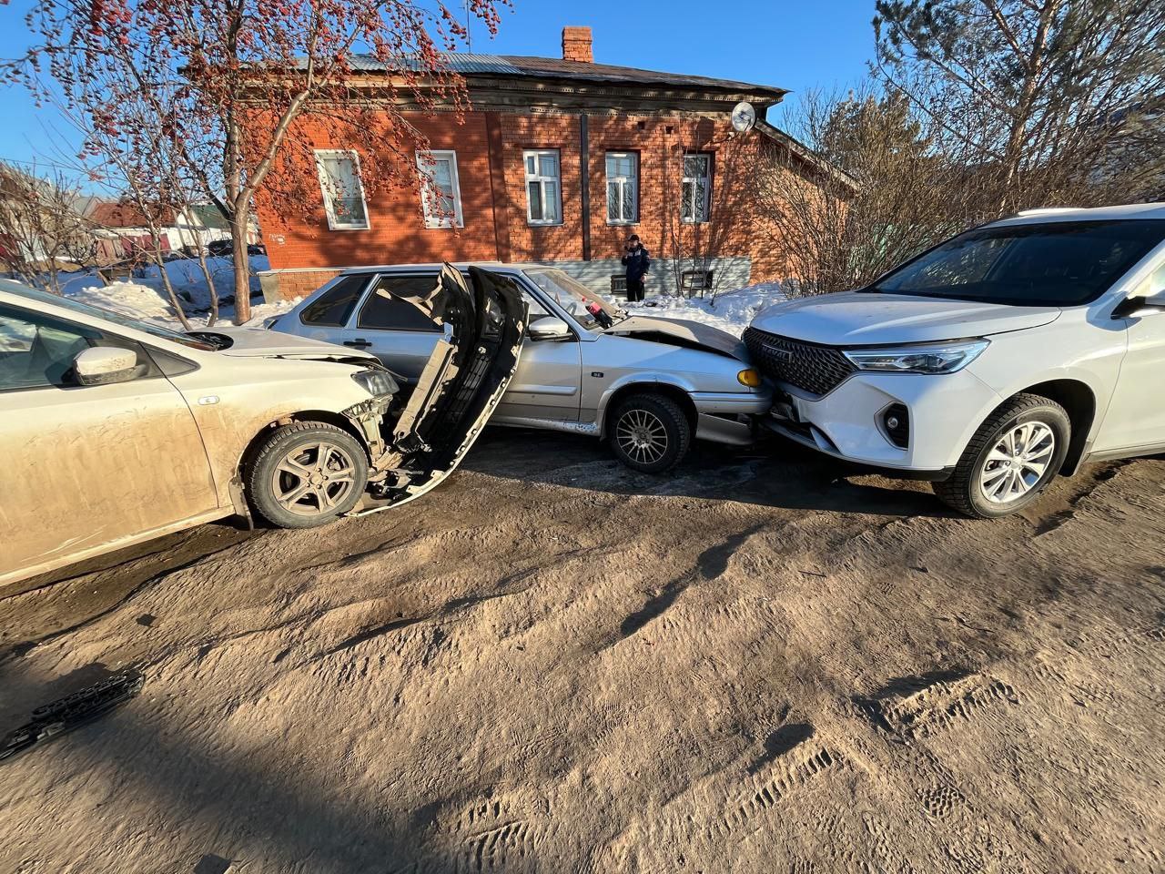 Водитель автомобиля Volkswagen Polo не уступил дорогу и допустил столкновение с автомобилем Toyota. После этого автомобиль Volkswagen врезался в стоявший на обочине автомобиль «ВАЗ 2114», который отбросило на припаркованный Haval.