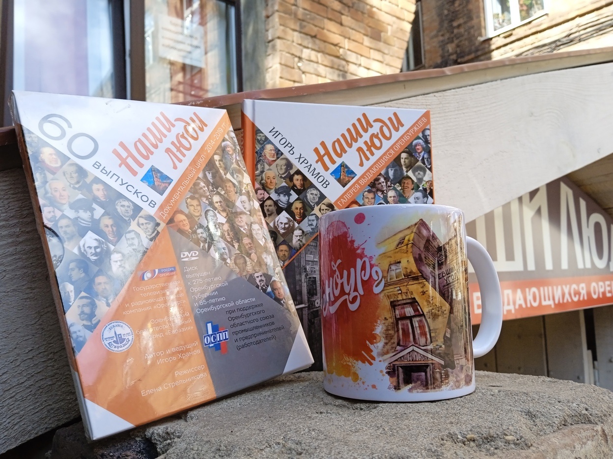 Это «Оренбург: взгляд в прошлое» (серия из вариокартинок в рамке, где старый вид города меняется на современный при изменении угла обзора), «Наши люди. Галерея выдающихся оренбуржцев» – линейка сувениров музея, «Черномырдинки» в картинках (в книге, на кружках и сумках) представляют сувенирную линейку Оренбургской области, а «оренбургский НЕпуховый платок» (картины на шелке) – бренд художницы Натальи Акакиной.