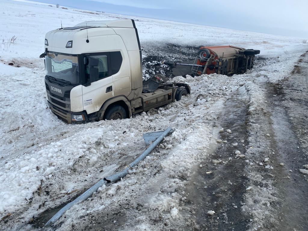 11 марта 9 утра на 63 км. автодороги «Орск-граница с республикой Башкортостан», недалеко от села Новочеркасское, опрокинулась фура с полуприцепом. 51-летний водитель, управляя автомобилем Скания, при движении со стороны Гая не справился с управлением и допустил съезд в левый по ходу движения кювет с последующим опрокидыванием полуприцепа.