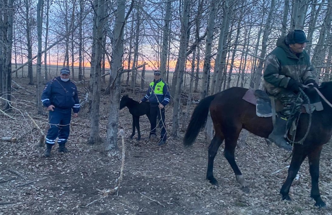 Сотрудники дорожно-патрульной службы в береговой роще на территории Новониколаевского сельского совета заметили жеребёнка.