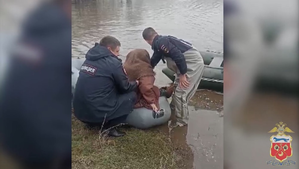 Села Колпакское Гайского городского округа затопило водами реки Урал. В эвакуации местных жителей активное участие принимают сотрудники полиции.