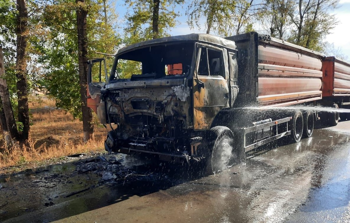 Сообщение о возгорании КАМАЗа в селе Грачёвка поступило на пульт диспетчера пожарной охраны накануне. На место были направлены 2 расчёта 20-й пожарно-спасательной части.