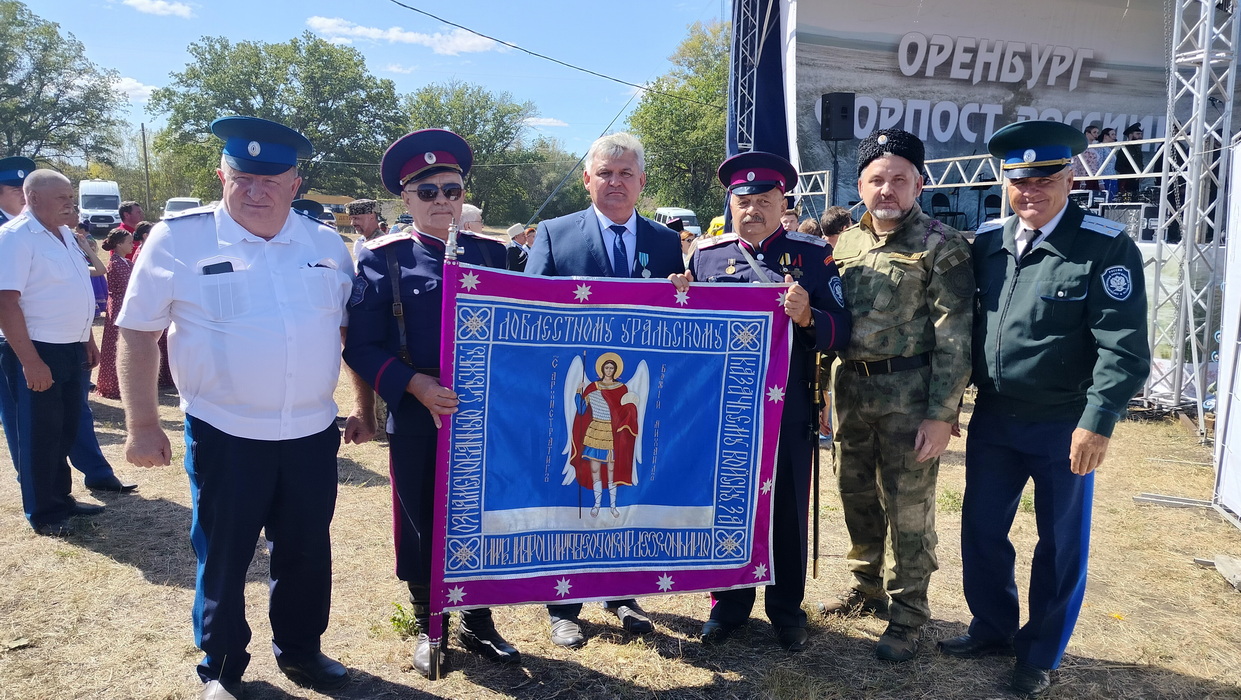 Важным событием праздника стала передача на вечное хранение копии знамени Уральского казачьего войска атаману Илекской станицы Игорю Крючкову. Это сделал атаман отдела.