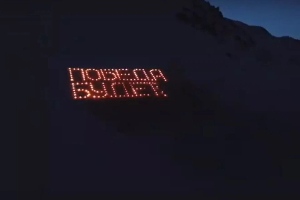 Такую же надпись факелами в 2023 году делали в Шерегеше (Кемеровская область) в преддверии празднования Дня Победы.
