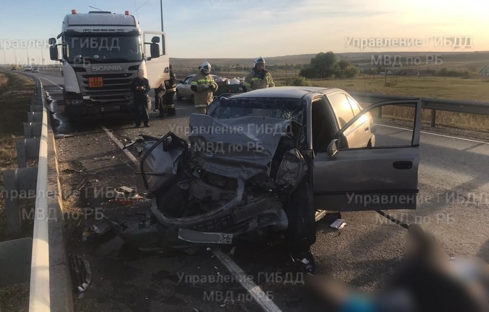 Водитель легкового автомобиля, а также 34-летняя женщина-пассажир от полученных травм скончались на месте. Известно, что они направлялись из Уфы в сторону Оренбурга.