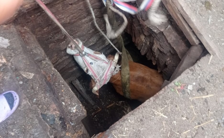 Сотрудники полиции выехали на место и обнаружили корову обнаружили в погребе соседнего дома.