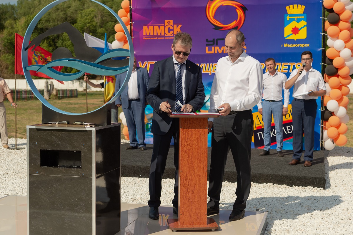 В этот же день глава региона Денис Паслер и генеральный директор УГМК Андрей Козицын заложили символическую «капсулу времени» на месте строительства нового спортивного объекта в Медногорске. В бассейне размером 11х25 метров одновременно смогут заниматься 32 человека, столько же в зале подготовительных занятий. Кроме того предусмотрены зрительские трибуны на 30 посадочных мест.