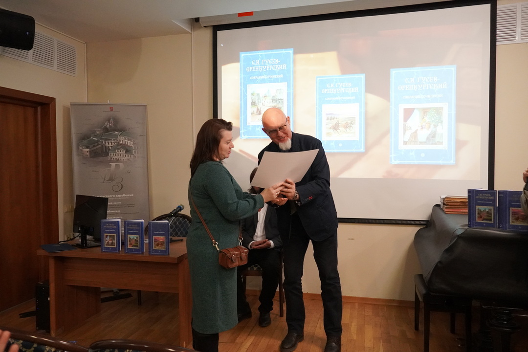 В Доме русского зарубежья имени Александра Солженицына в Москве прошла первая презентация собрания сочинений С.И. Гусева-Оренбургского. Мероприятие стало началом празднования 30-летия Оренбургского книжного издательства имени Донковцева, юбилей которого состоится 17 декабря.