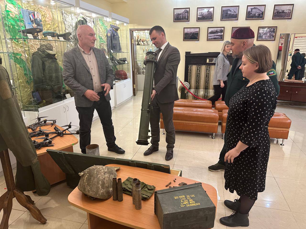 Волонтёр Владимир Катюха и участник СВО Рамиль Кагырманов передали в музей Соль-Илецка на временное хранение предметы, собранные в зоне специальной военной операции.