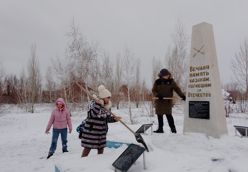 Накануне Нового года пятиклассники Новоорской средней школы №1 вышли на уборку снега у памятника казакам. Об этом сообщил старейшина Новоорского станичного общества Пётр Гришин.