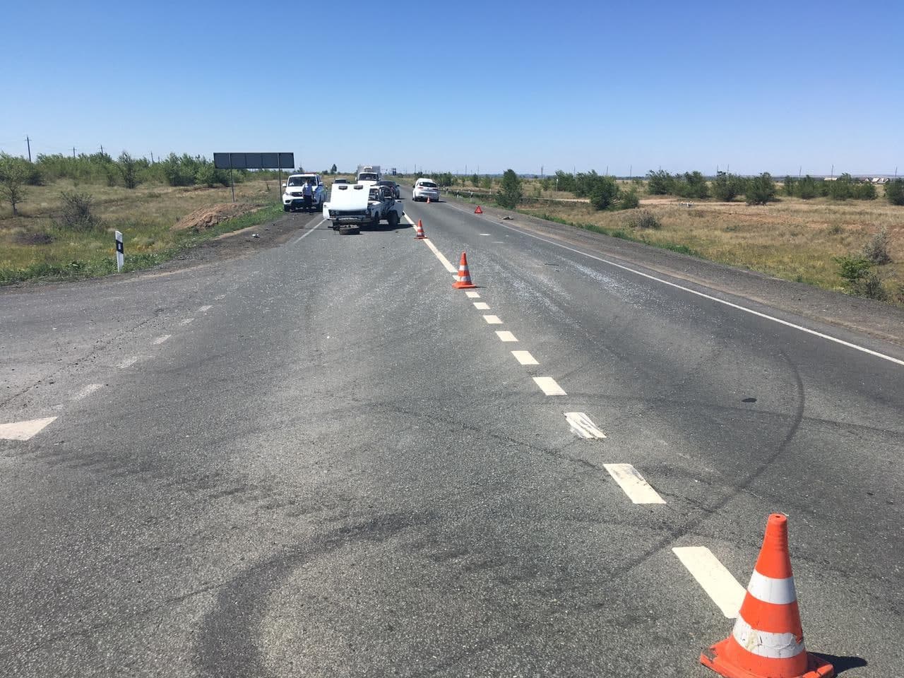 Произошло столкновение автомобилей ВАЗ-2106 и Сеат Леон в районе перекрестка при повороте на село Горьковское. Двигаясь в попутном направлении со стороны Новоорска, водитель иномарки, желая совершить обгон впереди идущего автомобиля КАМАЗ, не заметил, что водитель ВАЗ-2106 начал маневр «поворот налево» и врезался в него.