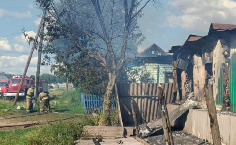 В 19.45 пожар был полностью ликвидирован. Пламя повредило стены, перекрытия, кровлю двух жилых домов и нескольких хозяйственных построек. По факту пожара проводится проверка.