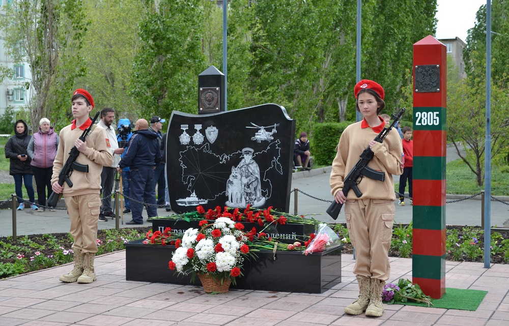 Памятник пограничникам всех поколений торжественно открыли в Новотроицке. На чёрной мраморной плите, повторяющей очертания флага, выгравирована государственная граница СССР и пограничник, в задачу которого входит охрана сухопутных, воздушных и водных рубежей страны.