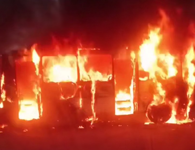 В Новотроицке на улице Ломоносова произошло возгорание пассажирского автобуса.