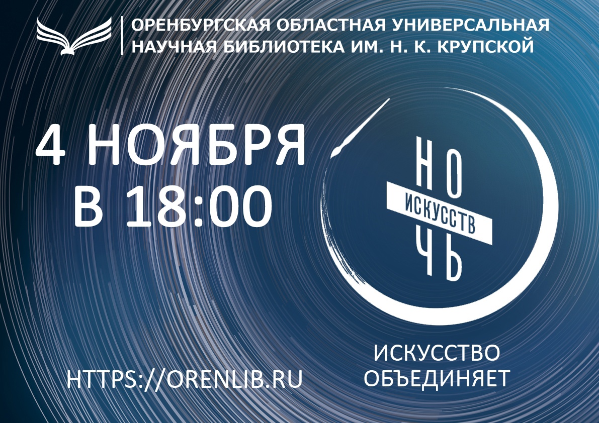 В Оренбурге «Ночь искусств» в этом году пройдёт 4 ноября с 18.00 до 21.00 в областной библиотеке имени Крупской. Гостей акции ожидают выставки, концерты, мастер-классы, квесты. Вход свободный.