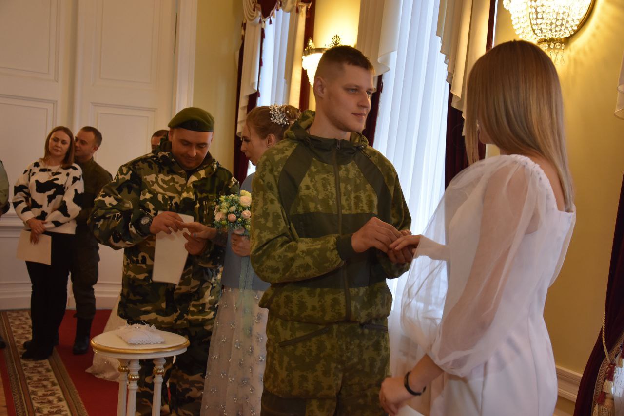 Мужчины, призванные в рамках частичной мобилизации, зарегистрировали брак в день подачи заявления. Вся процедура от оформления документов до объявления мужем и женой заняла около 30 минут.