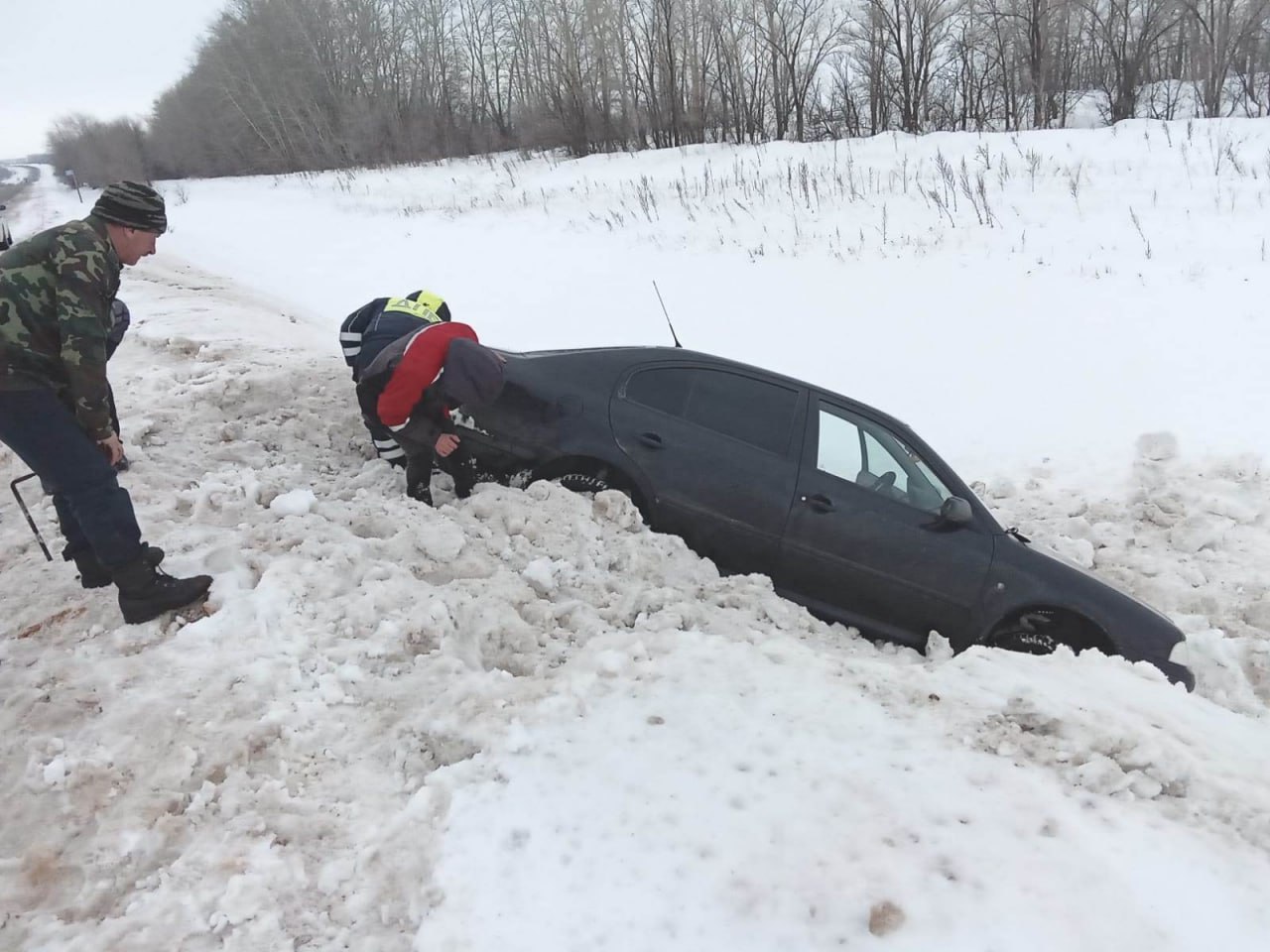 Во время движения 64-летний водитель автомобиля «Шкода» отвлёкся от управления и допустил съезд машины в левый по ходу движения кювет. Водитель не пострадал, транспортное средство механических повреждений не получило, но выбраться из снежного плена самостоятельно мужчина не смог и обратился за помощью к полицейским.