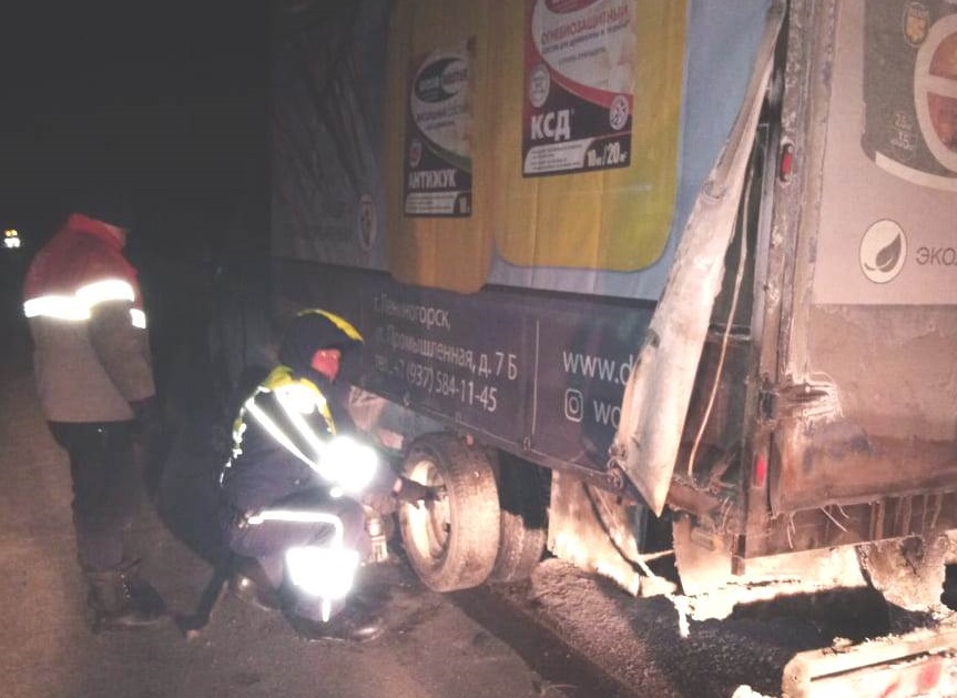 В ходе движения колеса не выдержали нагрузки и лопнули, срезав шпильки для крепления. Сам автомобиль работал исправно, переохлаждение водителю и пассажиру не грозило.
