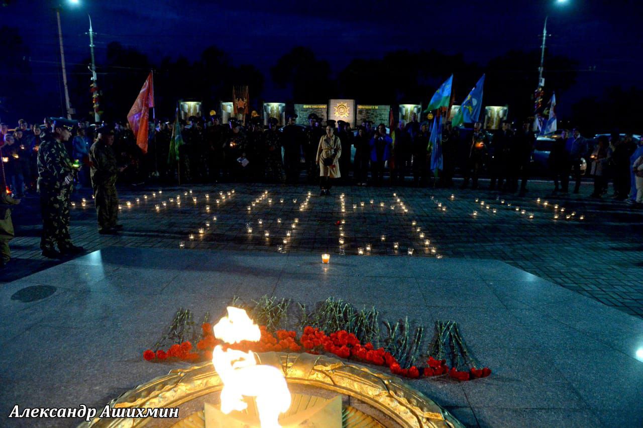 Присутствующие почтили минутой молчания память погибших героев, под песню «Журавли» возложили к Вечному огню цветы и зажжённые свечи. Из горящих свечей участники выложили слова «Мы помним».