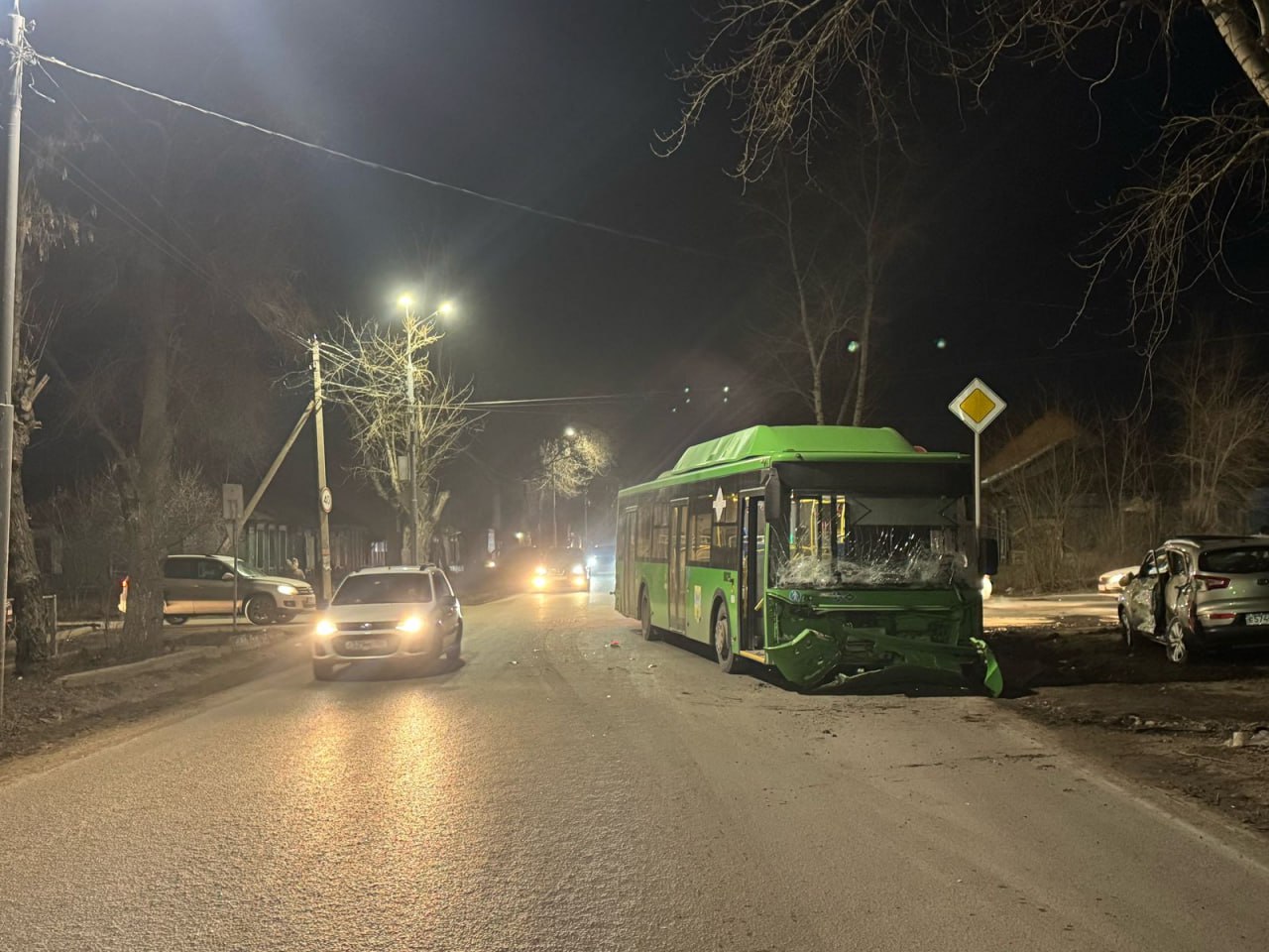 Водитель и пассажир автомобиля KIA, а также кондуктор автобуса были доставлены в больницу. В салоне автобуса находились 5 пассажиров, по предварительным данным они не пострадали.