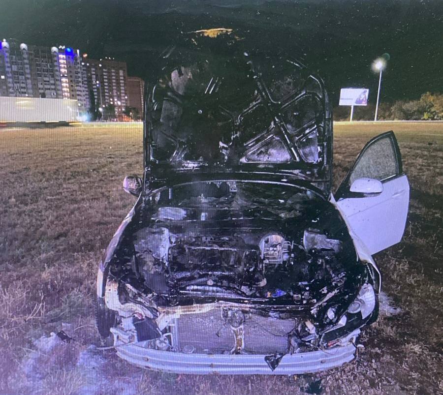 28-летний водитель автомобиля Chevrolet на большой скорости не справился с управлением и врезался в бордюрный камень кольцевой развязки. После этого произошло возгорание моторного отсека.