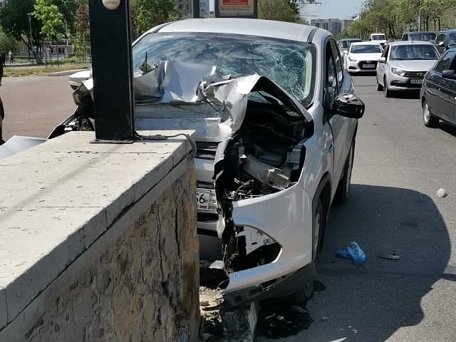 Сегодня в 11.13 напротив дома 35 по улице Чкалова 40-летний водитель автомобиля Ford Kuga не справился с управлением и врезался в бетонный борт подземного перехода.