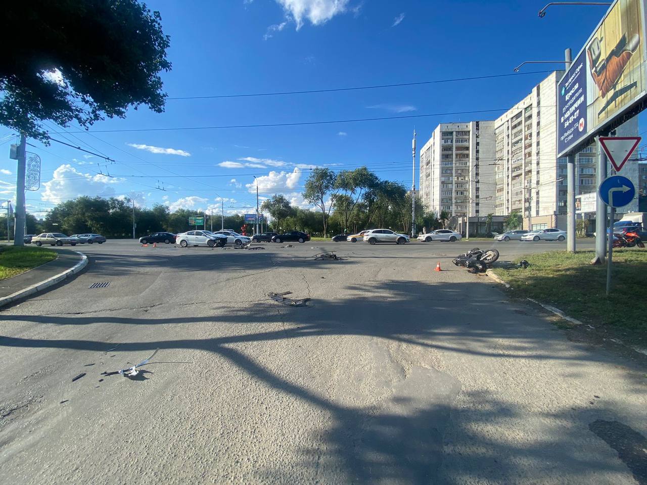 11 августа на проспекте Гагарина в Оренбурге произошло дорожно-транспортное происшествие с участием мотоциклистки.