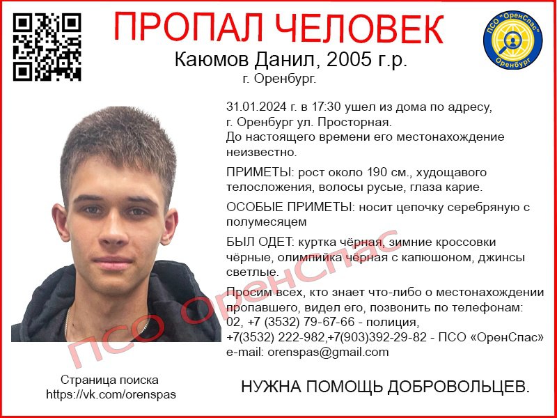 В Оренбурге разыскивают Данила Каюмова 2005 года рождения. Об этом сообщили волонтёры поисково-спасательного отряда «ОренСпас».