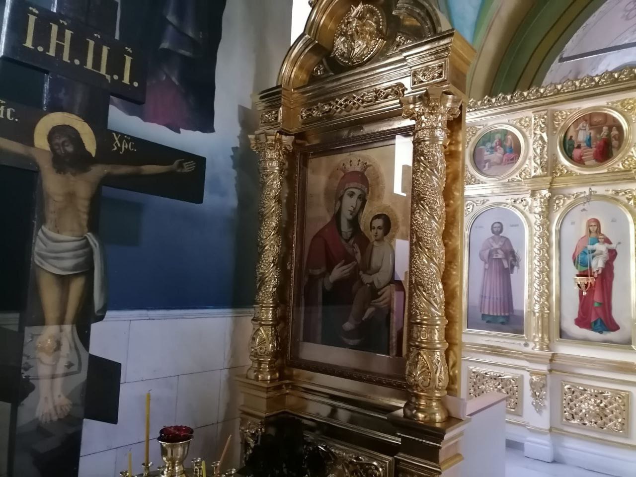 Неизвестный похитил пожертвования храма с иконы, а также золотые изделия из церковной лавки. Сейчас сотрудники полиции устанавливают все обстоятельства хищения.