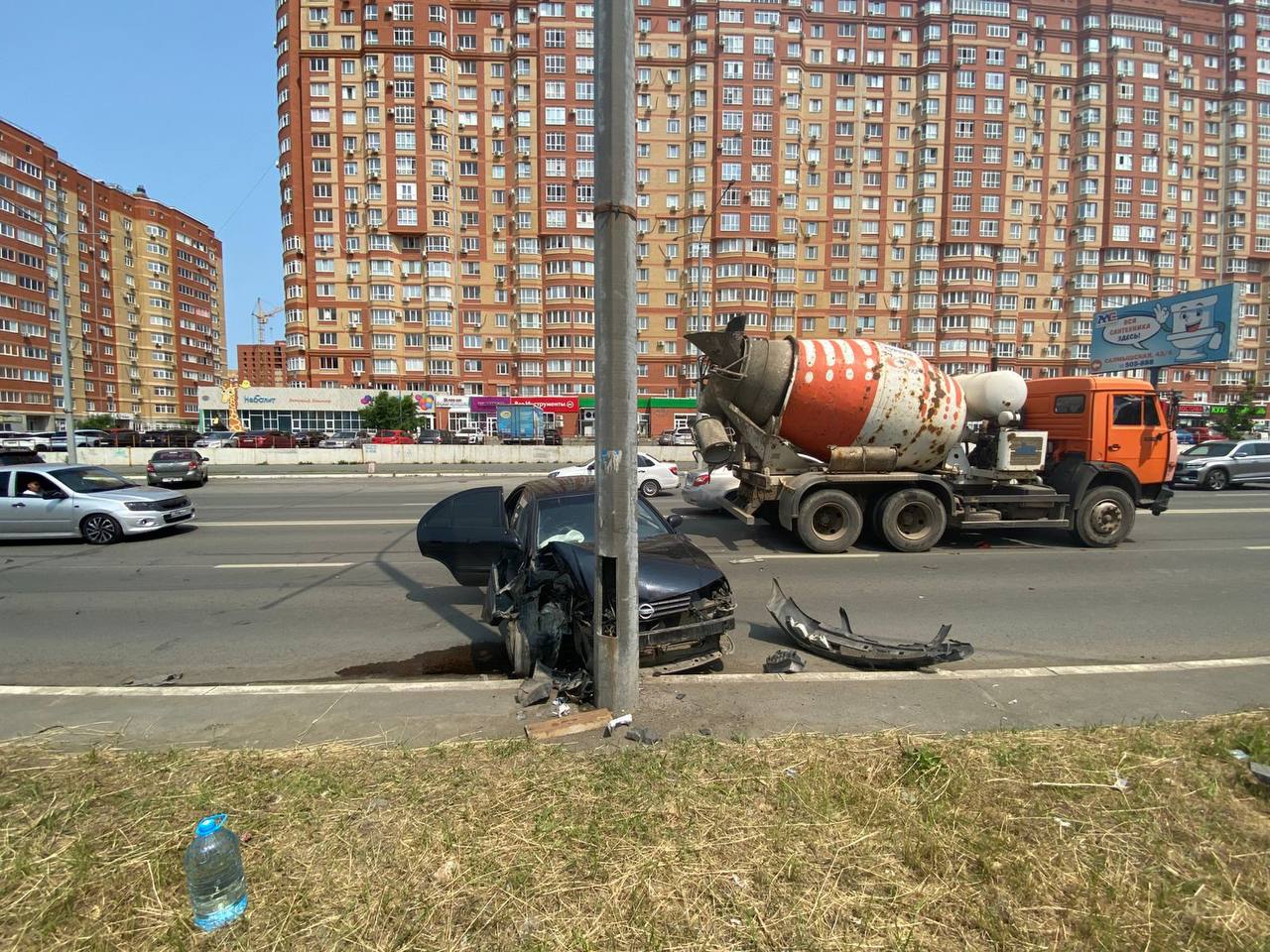 Авария произошла из-за несоблюдения безопасной дистанции водителем грузовика. В итоге Nissan столкнулся с опорой линии электропередач.
