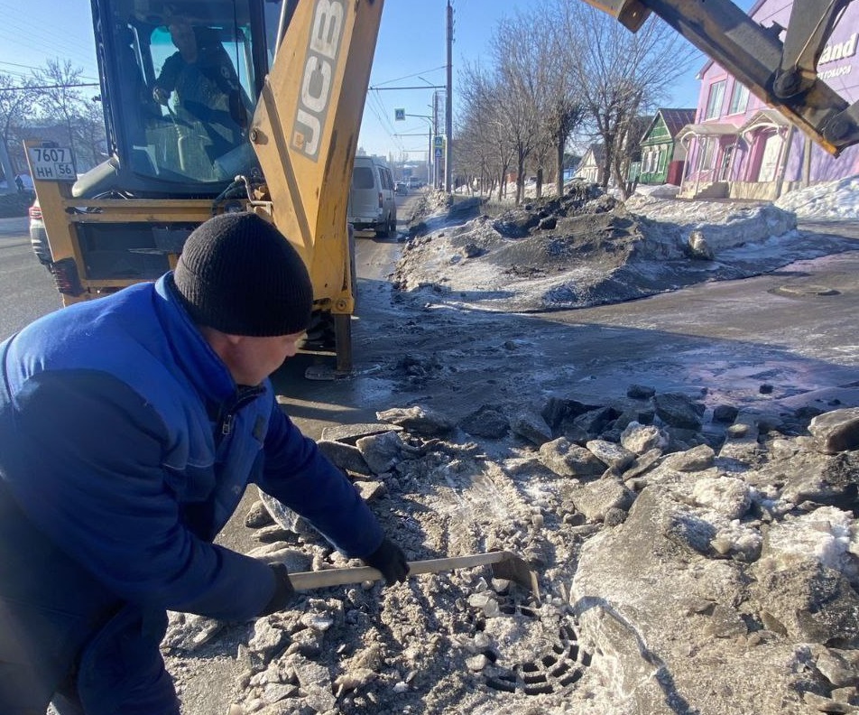 В областном центре сотрудники коммунальных предприятий расчищают решётки ливнёвок и водоотводные канавы.
