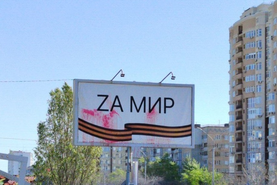 В Оренбурге неизвестный злоумышленник вылил красную краску на билборд «Zа мир».