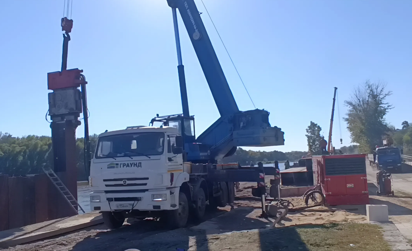 На данный момент погружено более 300 шпунтов — прошли самый сложный отрезок под пешеходным мостом и вышли на прямой участок.