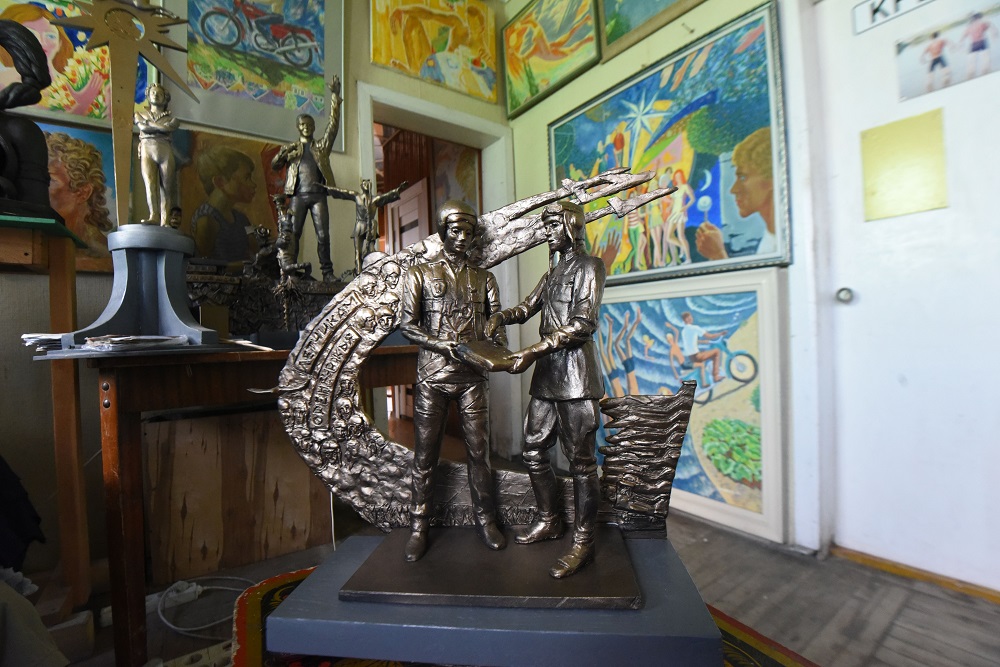 Моделями будущих памятников уставлена мастерская.