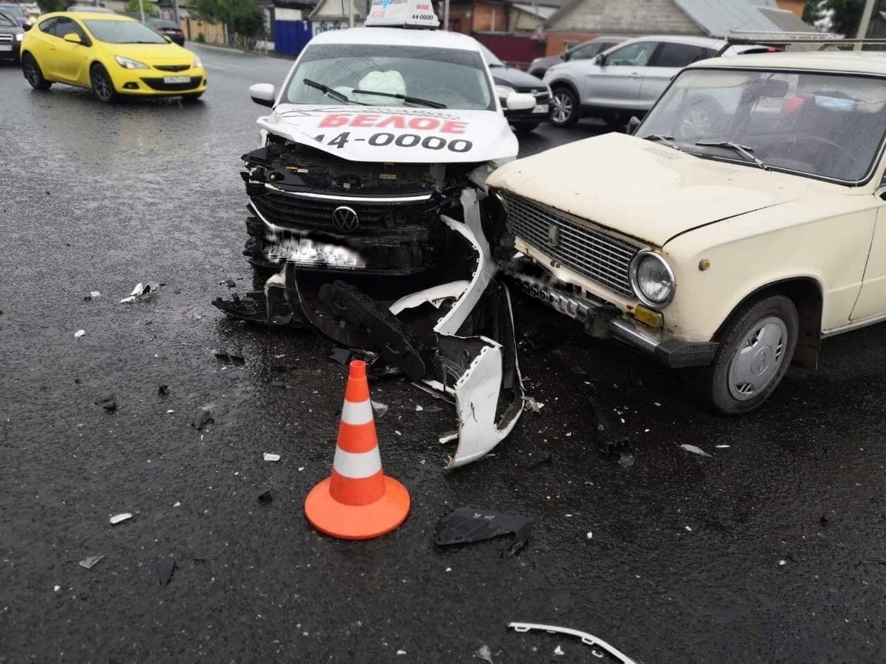 Сегодня в 10.46 на пересечении проспекта Победы и улицы Степана Разина в областном центре водитель автомобиля Volkswagen не уступил дорогу и допустил столкновение с автомобилем Toyota. После этого в автомобиль Volkswagen врезался «ВАЗ-2101».