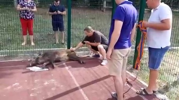 На спортивную площадку лицея №7 в Оренбурге на проезде Промысловом забежал дикий кабан.