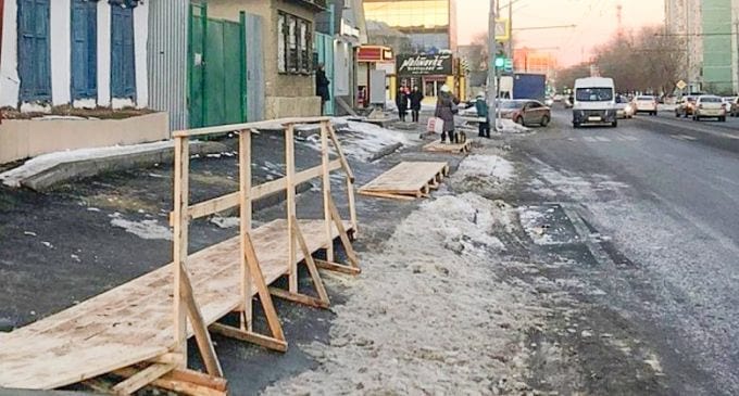 Установка деревянных трапов на пешеходной зоне на участке улице Туркестанской, где имеется сильный уклон в сторону проезжей части, была временной мерой, подчеркнули в городском управлении строительства и дорожного хозяйства.