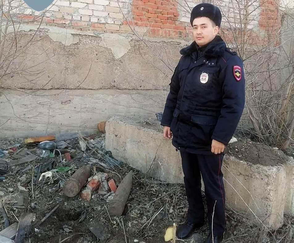 Место обнаружения снарядов было оцеплено. Участковый уполномоченный отдела полиции №1 Нурбулат Мухтубаев охранял общественный порядок до приезда сапёров.